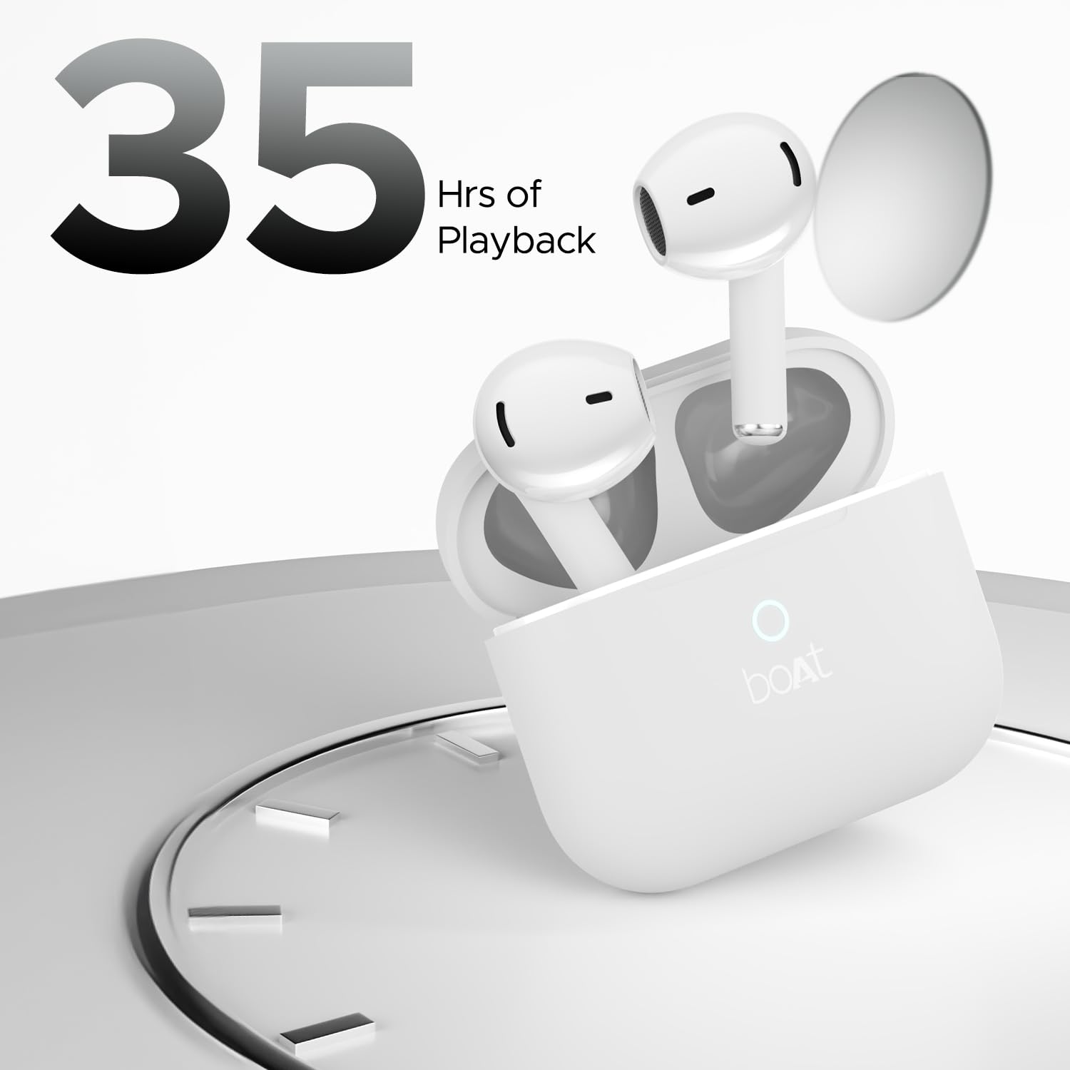 Groove to your favorite songs for hours on end, flaunting the boAt Airdopes Alpha Earbuds. boAt’s IWPTM tech speeds up pairing so there’s no time lost for your entertainment. The large 13 mm dual drivers pump out high-octane boAt Signature sound making these earbuds truly an alpha. Long rides are no longer tedious when you can catch up on podcasts or new OTT releases, courtesy of the immense playback time of up to 35 hours. Additionally, ASAPTM charge ensures that the fun never stops with up to 120 minutes of playtime when charged for merely 10 minutes. Moreover, BEASTTM mode eliminates lag with 50 ms low latency infusing a dose of adrenaline into your gaming sessions. With dynamic sound in sync, visuals feel realistic. These earbuds also boast IPX5 resistance that keeps sweat and water splashes at bay for hassle-free workouts at the gym. A simple tap enables the voice assistant to follow a plethora of commands ranging from calling your loved ones to creating your shopping list. Complete your tasks on the go, with the alpha of true wireless sound at your fingertips.